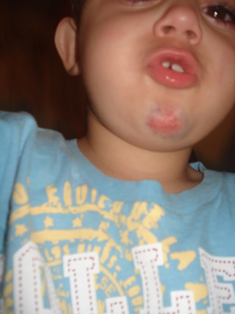 É assim que o Gabrielzinho está... Mas graças a Deus isso não afetou em quase nada nas rotinas dele. A única coisa é que ele não quer mais tomar mamadeira. Não sei se dói quando ele vai sugar o leite. Mesmo dormindo ele não quis tomar. No mais está tudo tranqüilo. Agora ele está muito falante! Tudo o que escuta ele repete! É tão bonitinho ver ele falando! Ás vezes ele me chama pelo nome e com o Marcelo a mesma coisa.